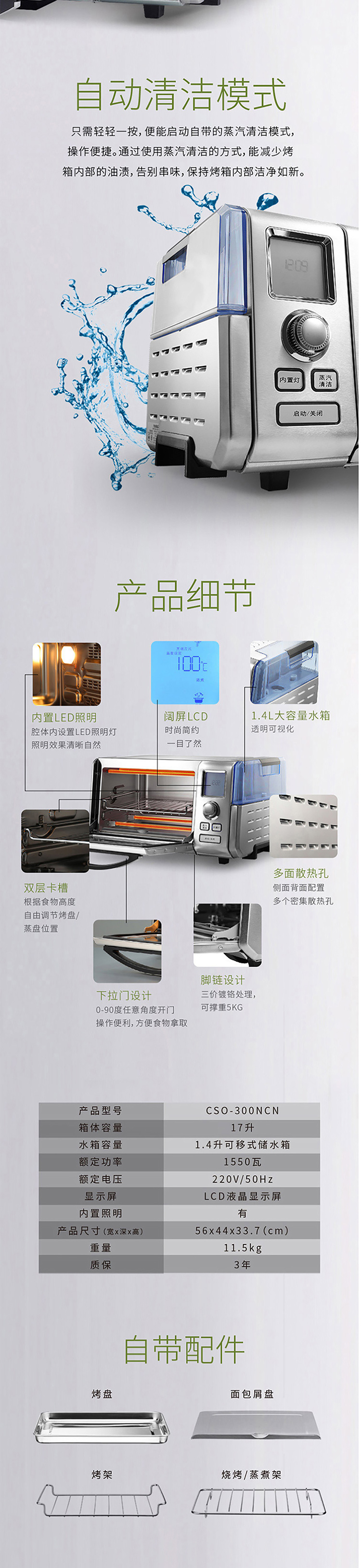美膳雅 CSO-300NCN 多功能独立式蒸烤箱 (单位:台) 银色