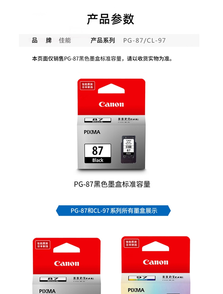 佳能/Canon PG-87黑色 墨盒 ...