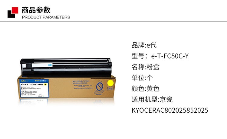E代 e-T-FC50C-Y 粉盒 (单位:个) 黄色 适用机型:京瓷KYOCERAC802025852025