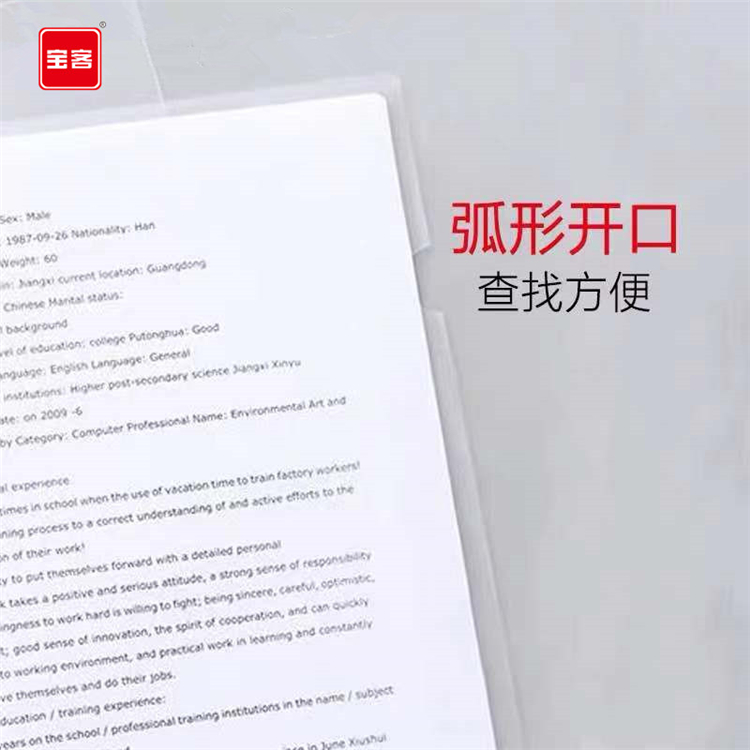 宝客 BK-330-14 14c抽杆文件夹 1.5cm 10个/包 A4 透明色 (单位:包)