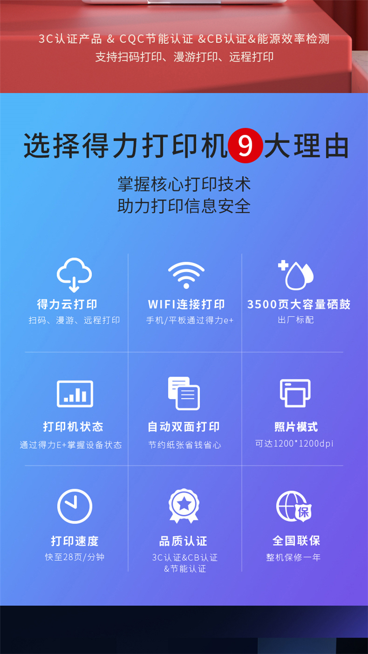 得力 deli M2500ADNW 标配...