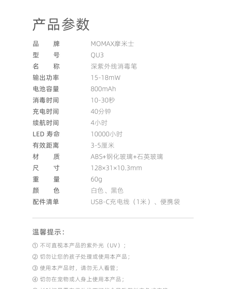 摩米士 QU3D 深紫外线消毒笔 黑色 ...