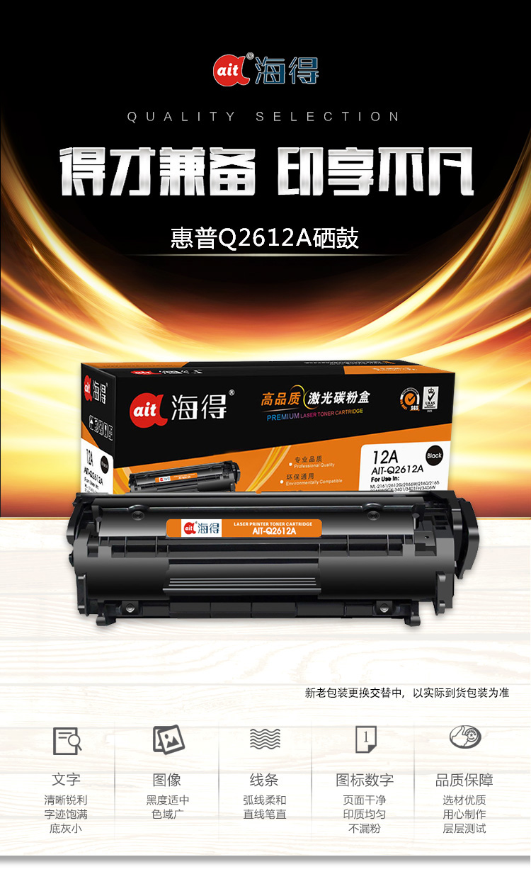 海得(ait) AIT-Q2612A 专业版 打印量约2000页 硒鼓 (计价单位:支) 黑色
