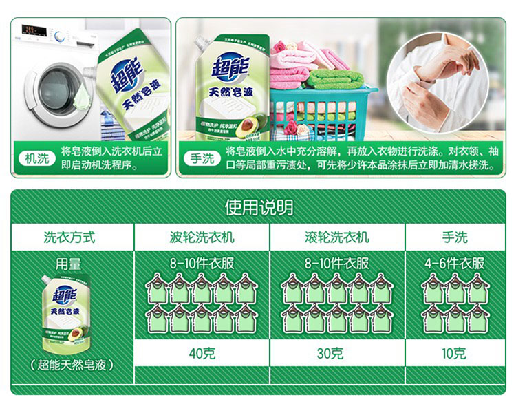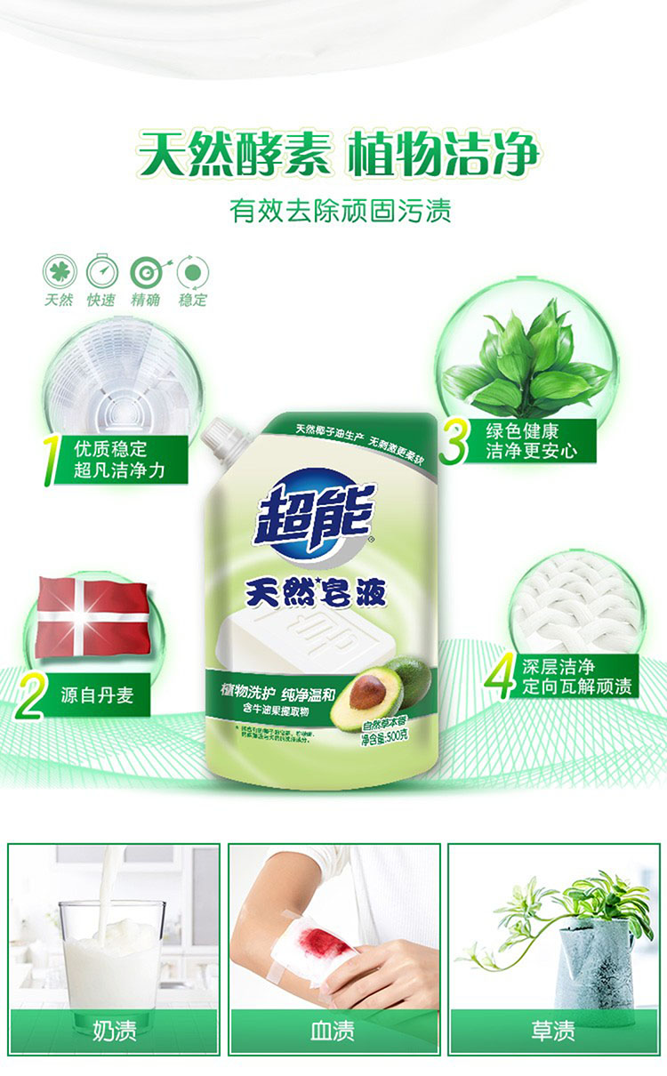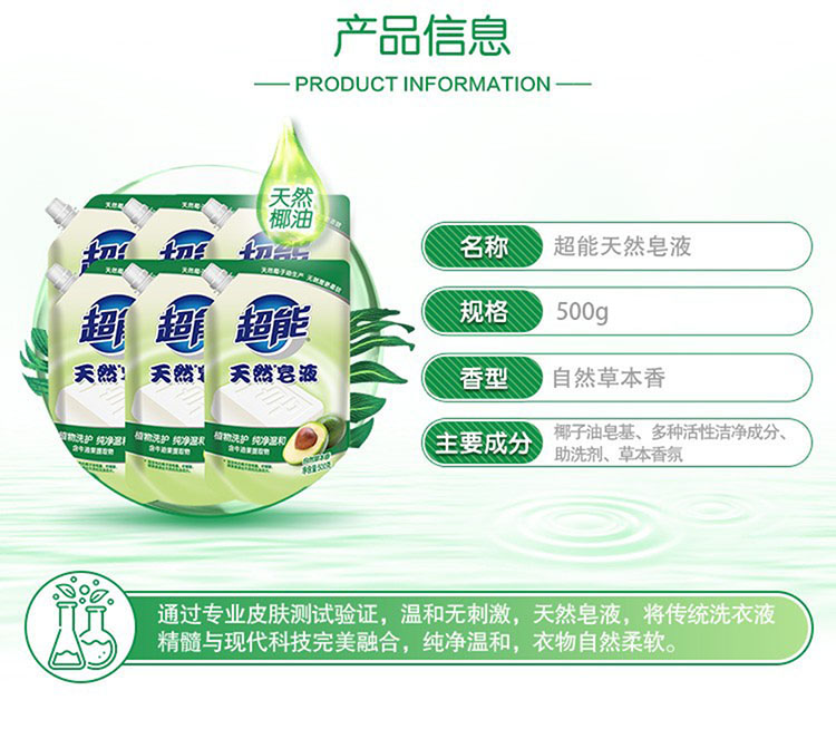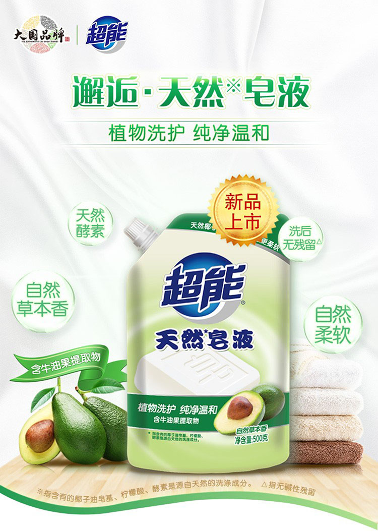 超能 天然皂液自然草本香带出液口D 500g 单位:袋