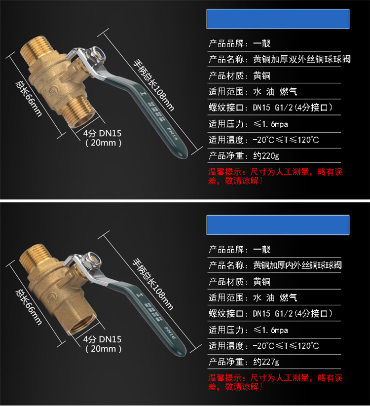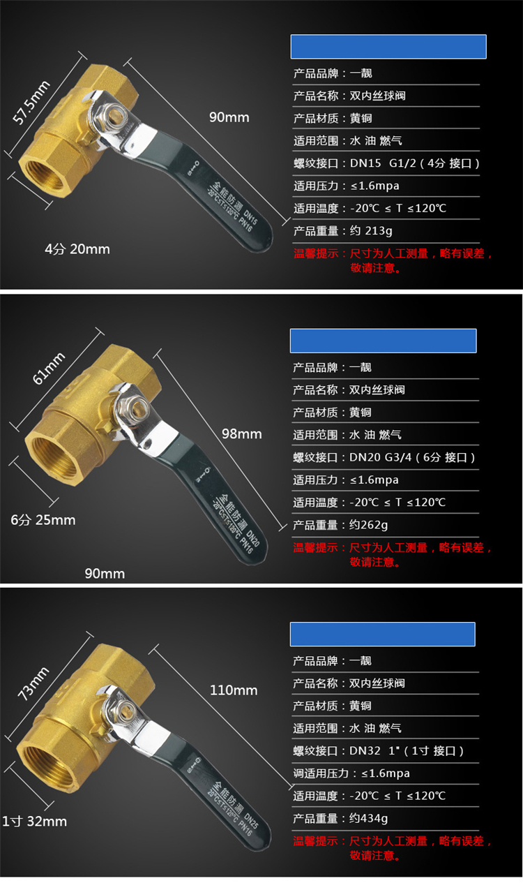 一靓 DN20 铜球阀(单位:个)