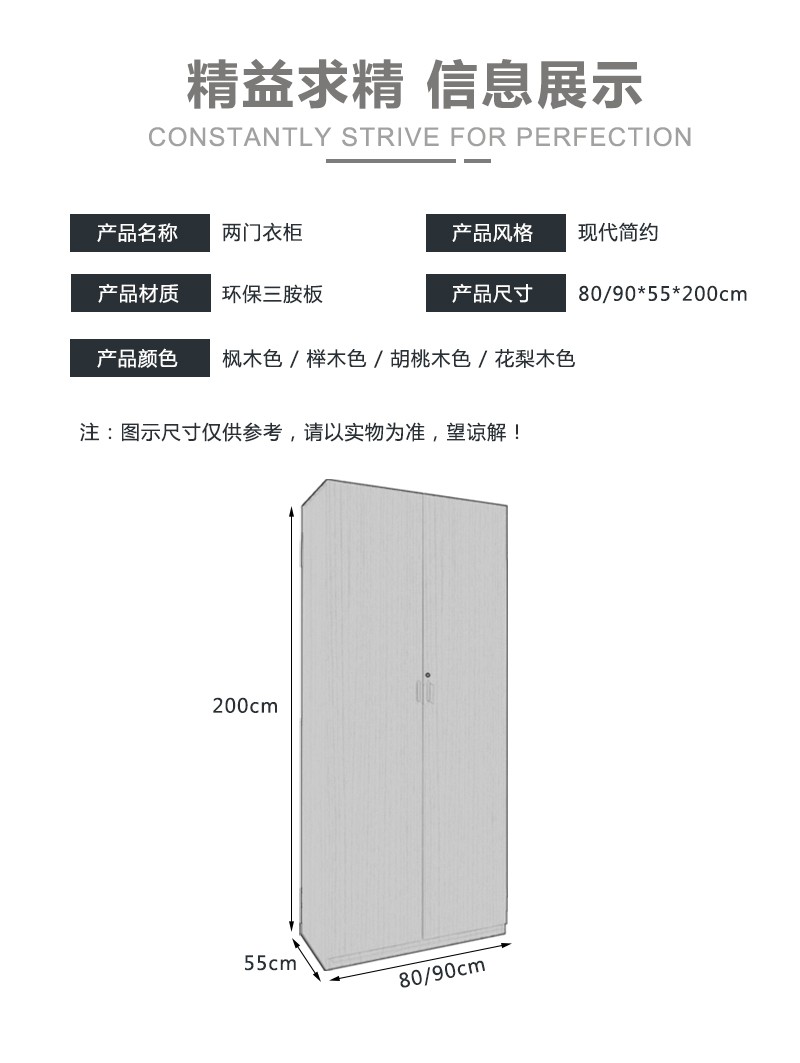 悦山 胡桃木色80cm宽 简易板式 衣柜 组合家具柜子宿舍储物柜 800*550*2000