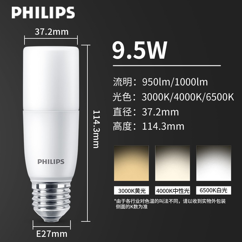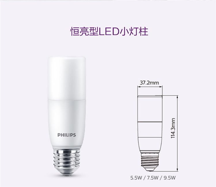 飞利浦(PHILIPS) 9.5W-4000K E27 恒亮型小柱灯泡(计价单位:只)
