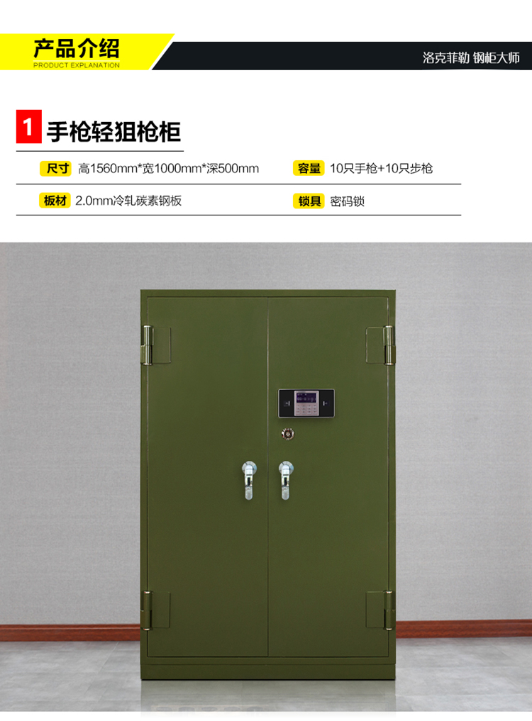 钱柜 95式 加厚钢制指纹锁手枪柜 军绿色 (单位:个)