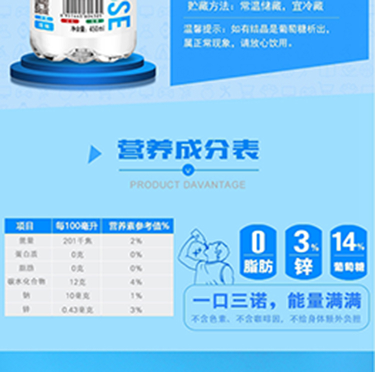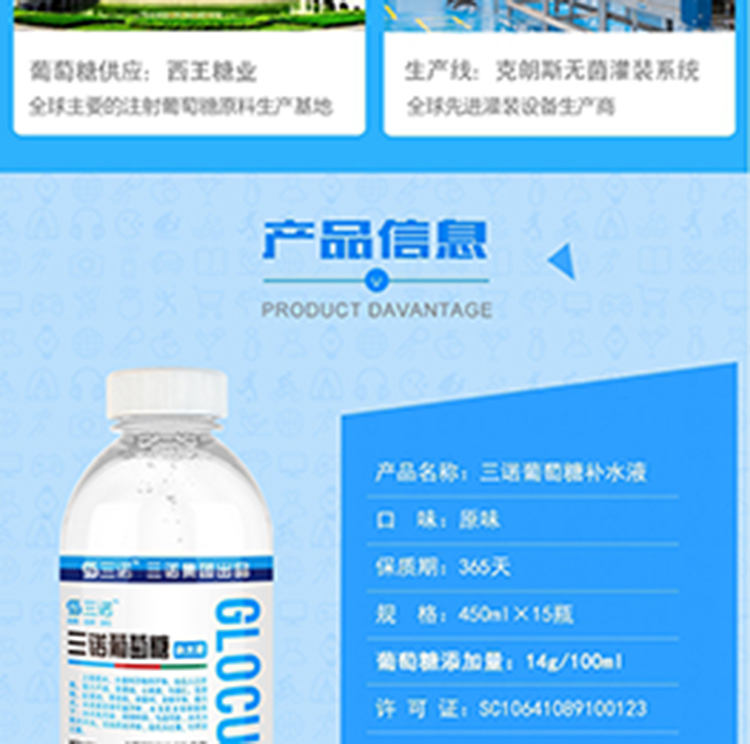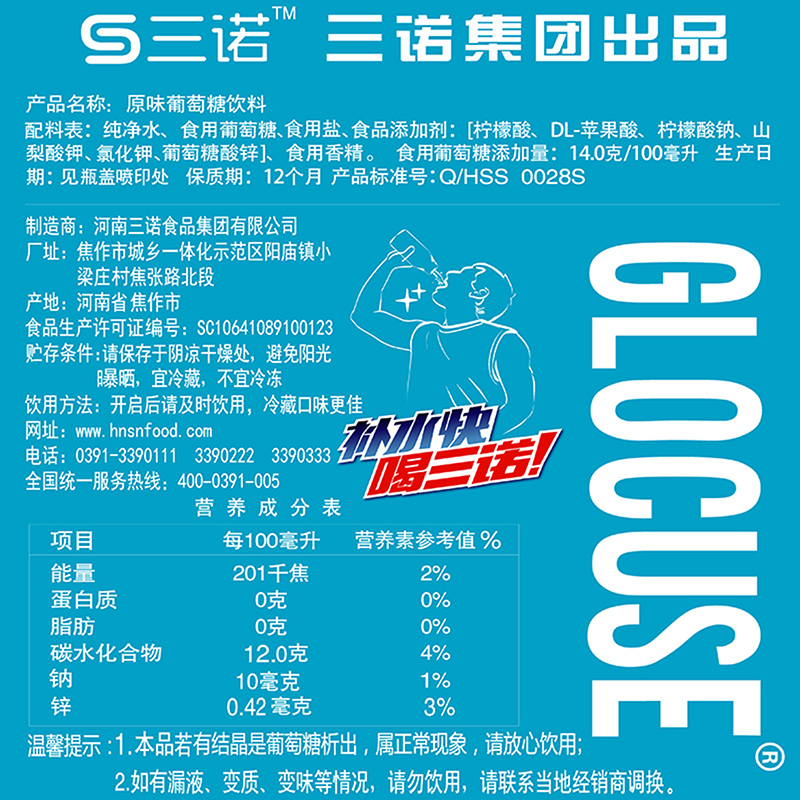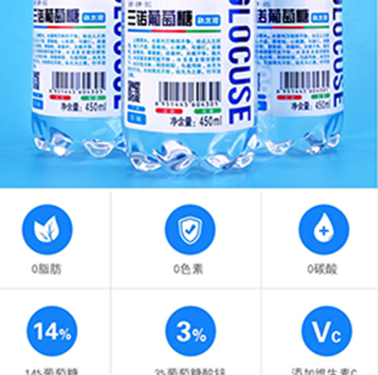 三诺 葡萄糖原味补水液 450ml*15瓶 (单位:箱)