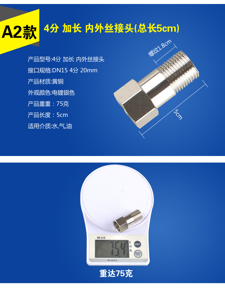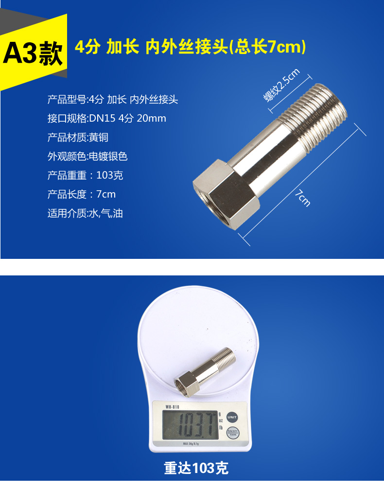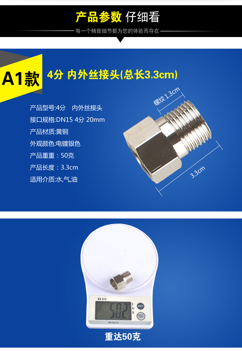 一靓 A3款 4分内外丝接头 银色(单位:个)