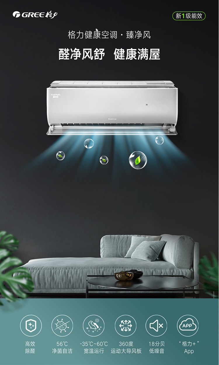 格力 KFR-35GW/(35543)FNhCh-B1(WIFI) 净风变频冷暖正1.5匹1级能效 空调 银色(单位:台)