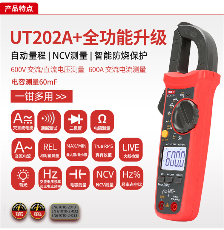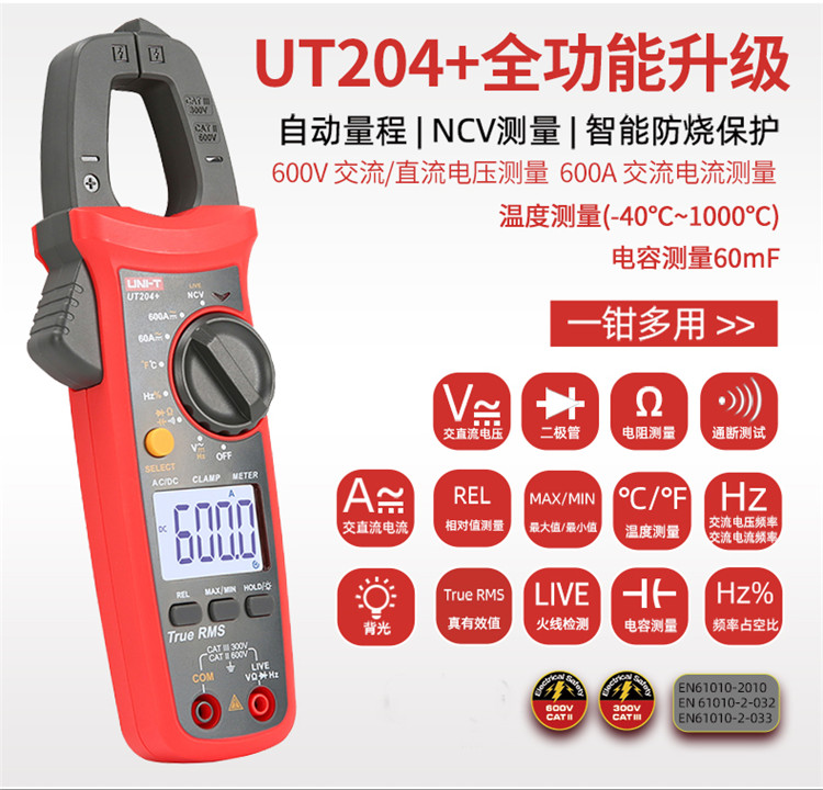 优利德 UT204+ 钳形数字万用表 (...