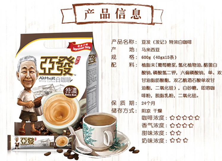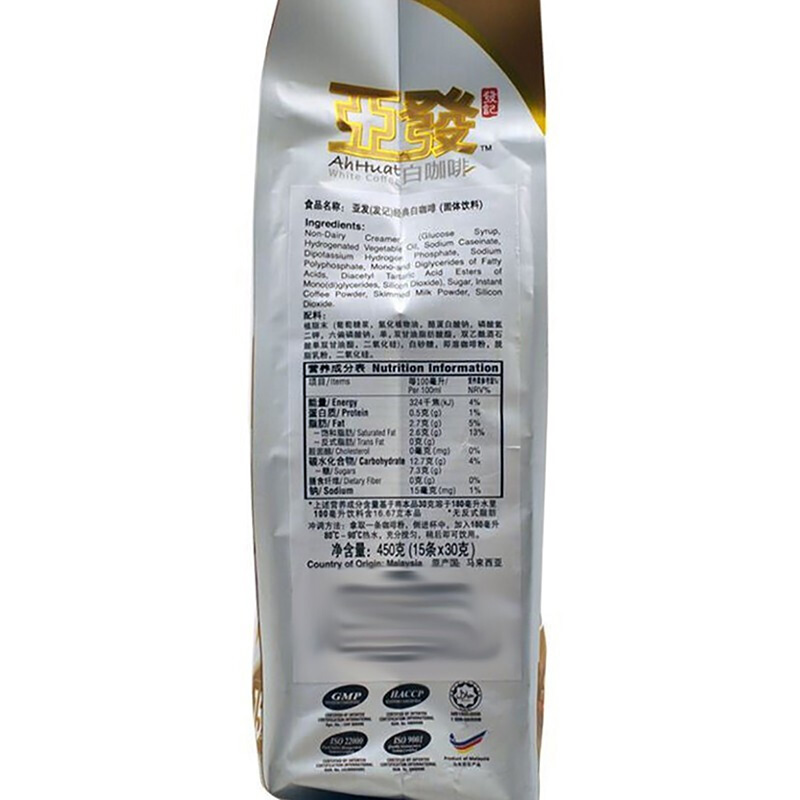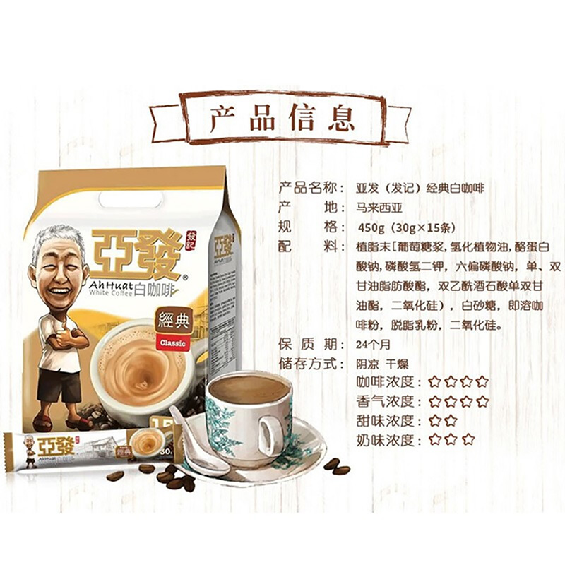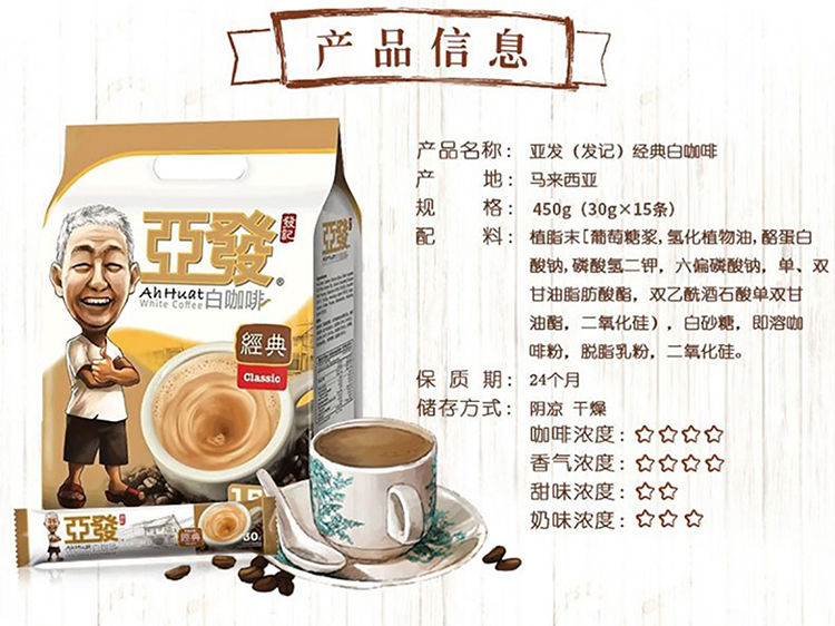 亚发 经典白咖啡30g*15条 450g 单位:袋