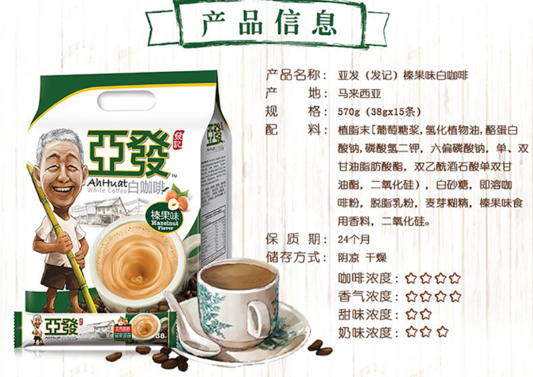 亚发 经典白咖啡30g*15条 450g...
