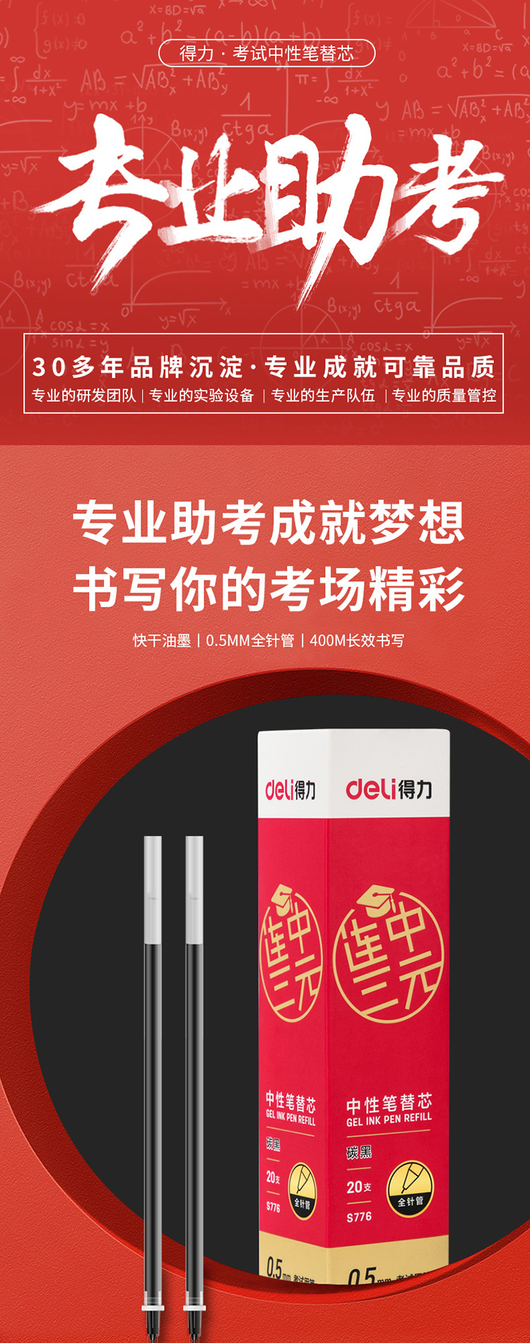 得力 S776 考试中性笔替芯全...
