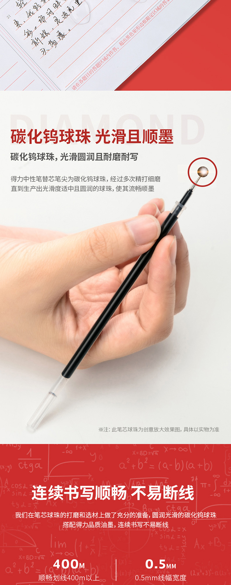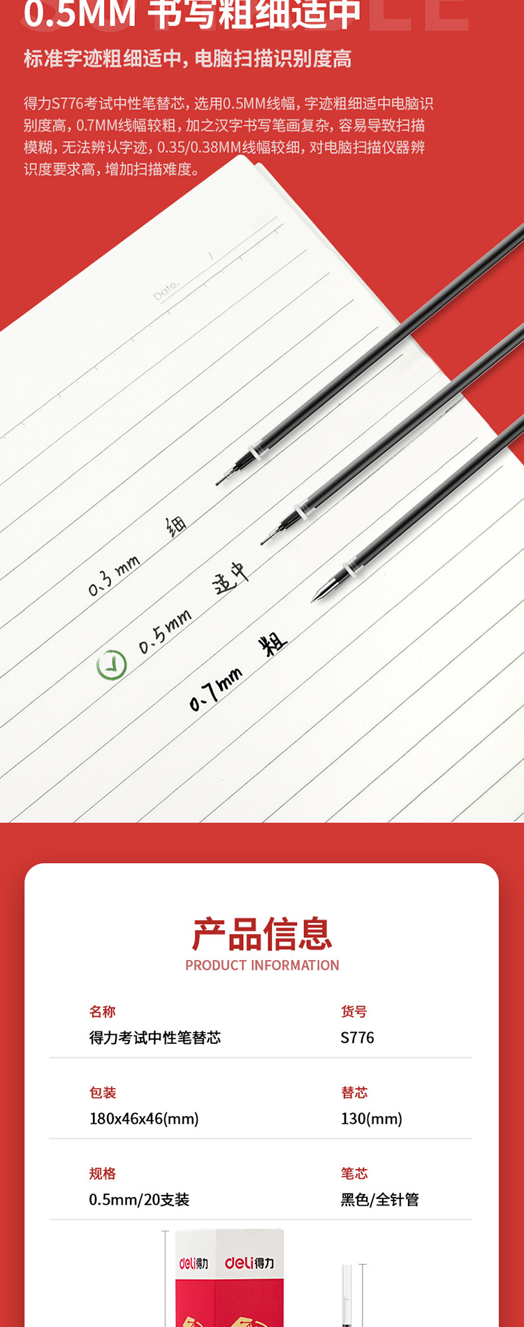 得力 S776 考试中性笔替芯全针管 0.5mm 红 单位:支