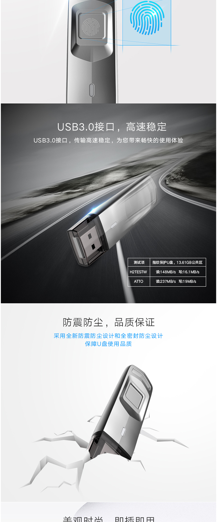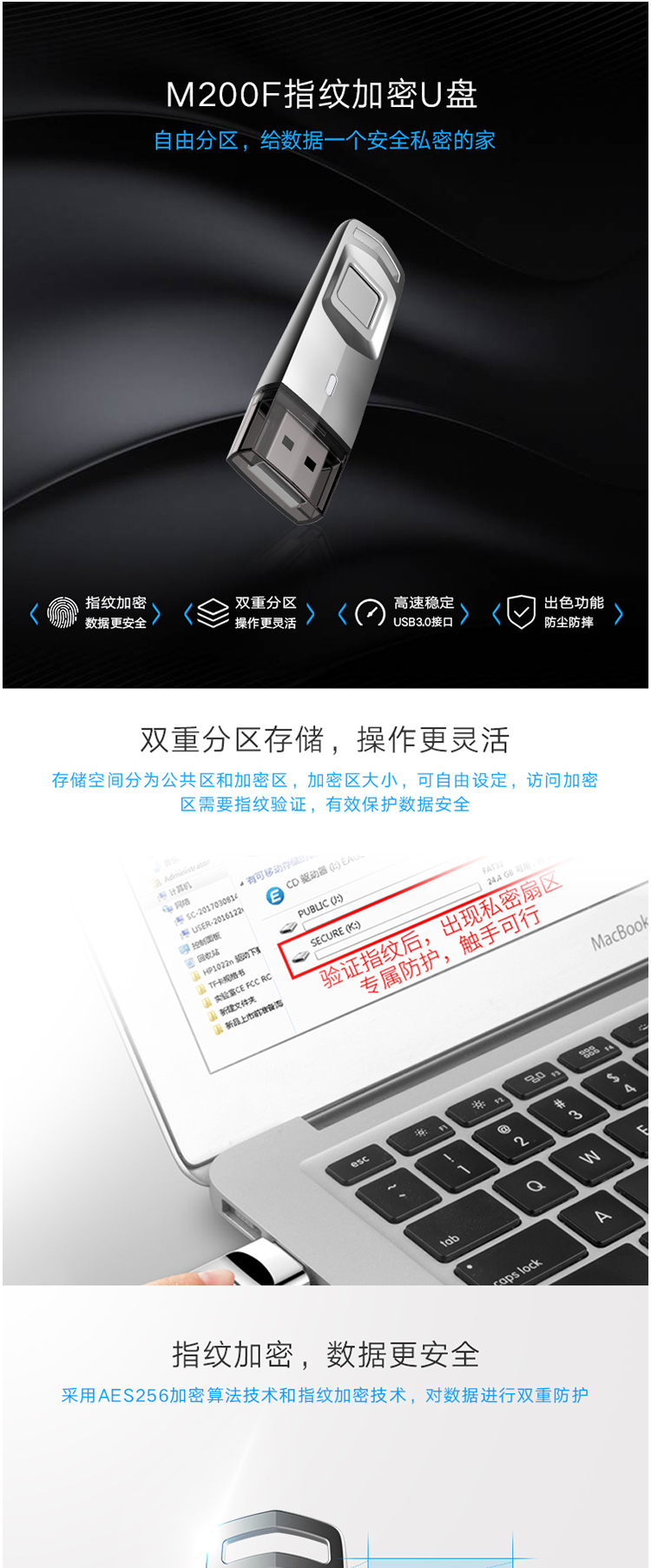 海康威视 HS-USB-M200F 32G 指纹U盘 USB 3.0 金属原色 (单位:个)