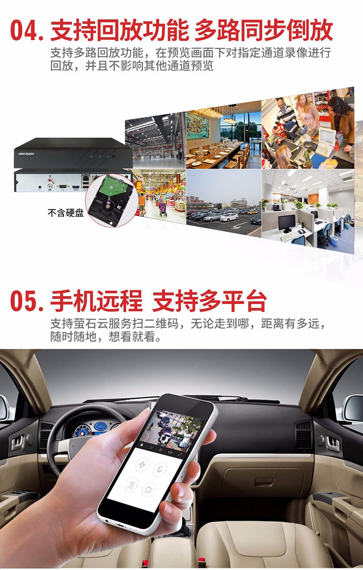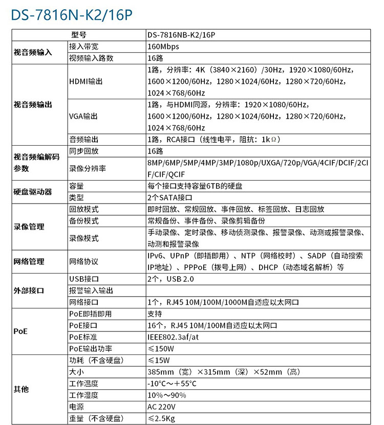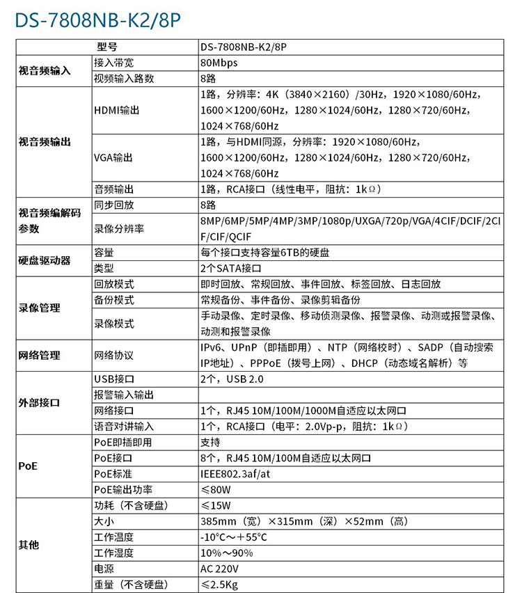 海康威视 DS-7808NB-K2/8P 支持400万 POE供电 8路网络 2盘位 监控硬盘录像机(单位:个)