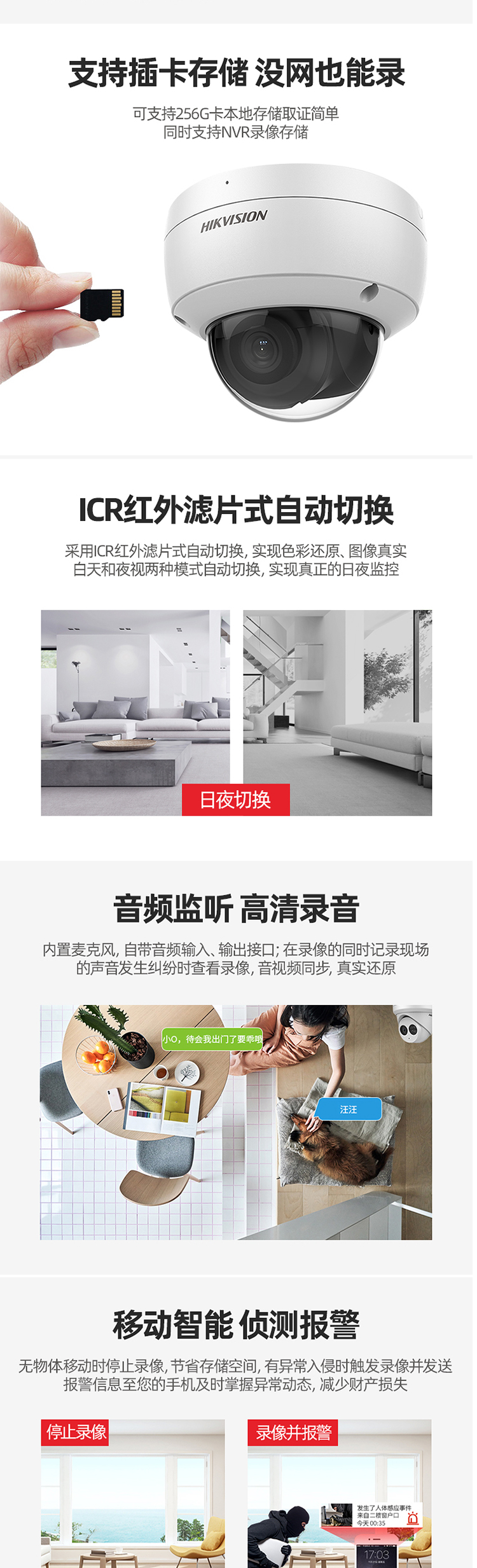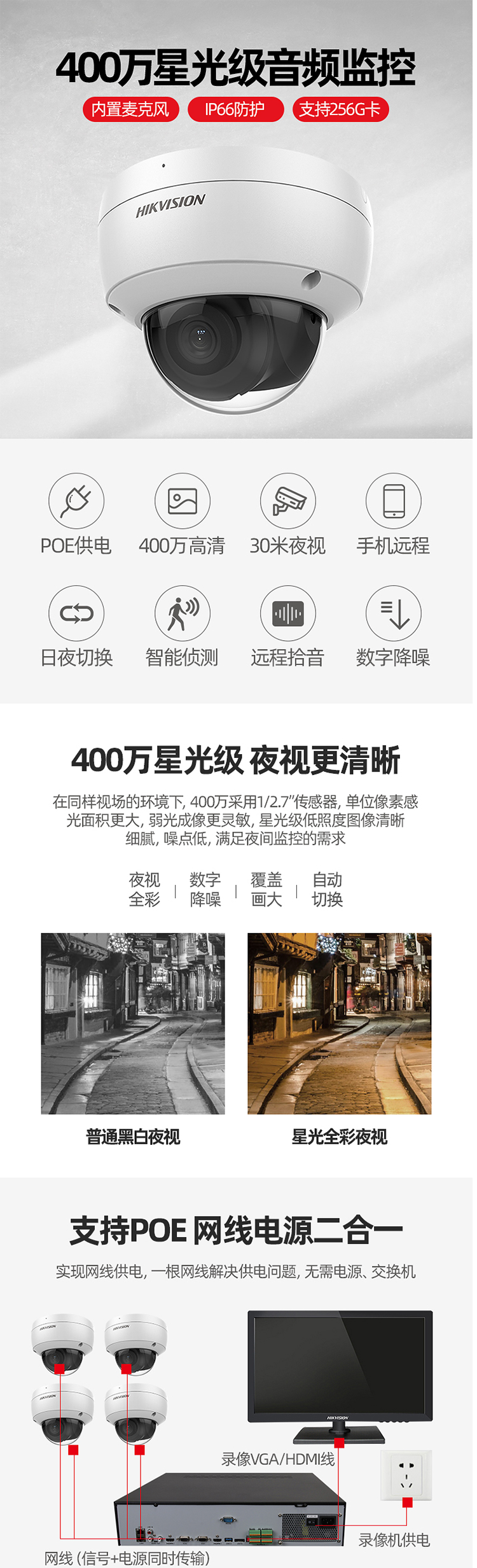 海康威视 DS-2CD3146FDWD-I 2.8mm 400万星光级音频网络监控摄像头 白色(单位:个)