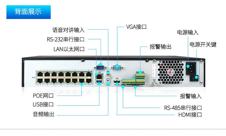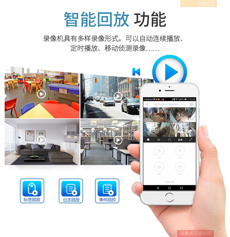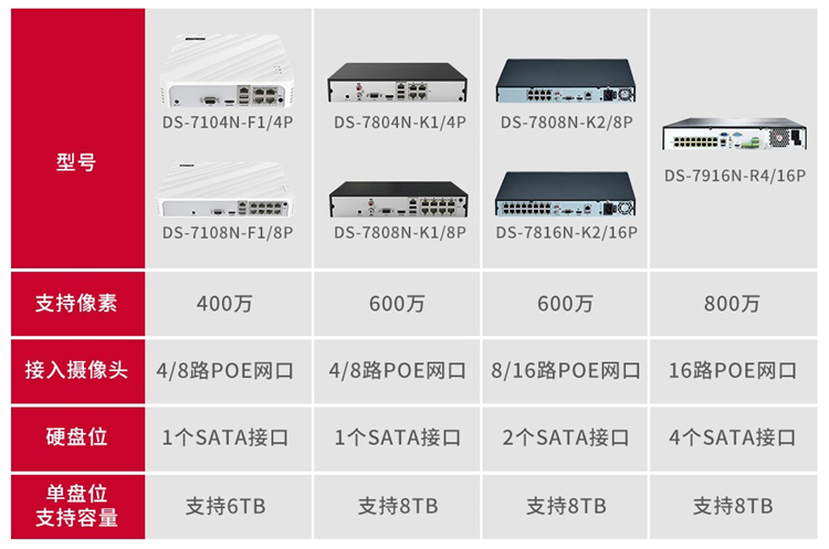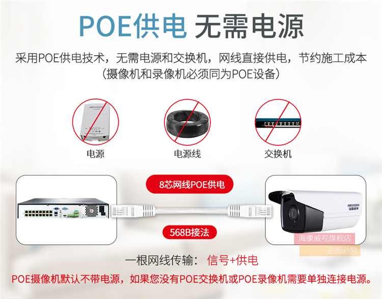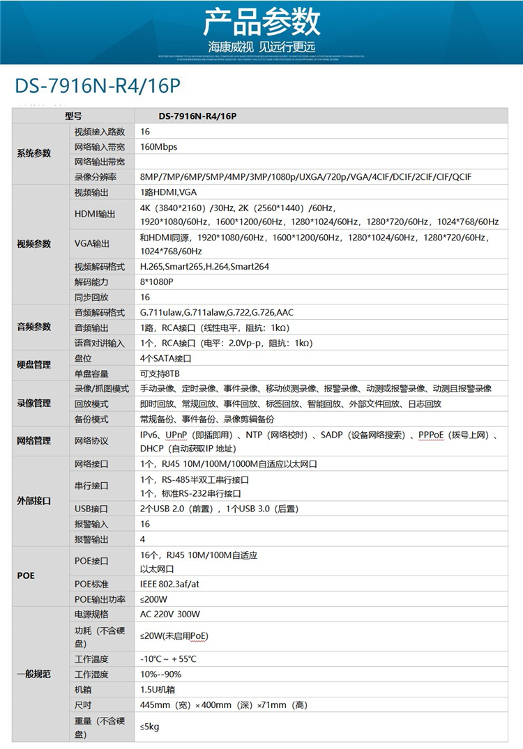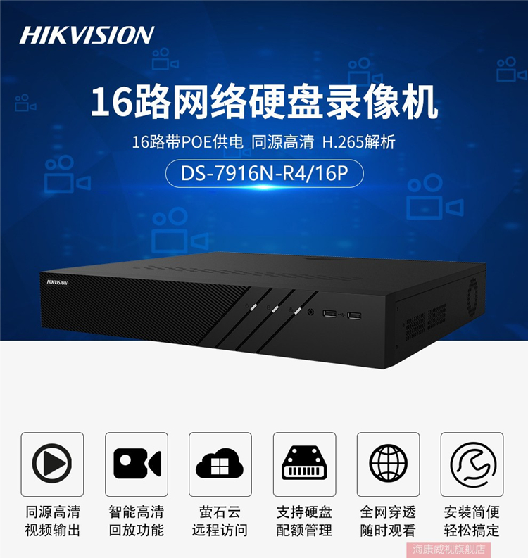 海康威视 DS-7916N-R4 4T存储 监控硬盘录像机(含poe/网线)单位:台