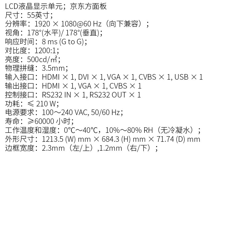海康威视 DS-D2055NL-B/Y 拼接屏显示 黑色(单位:套)