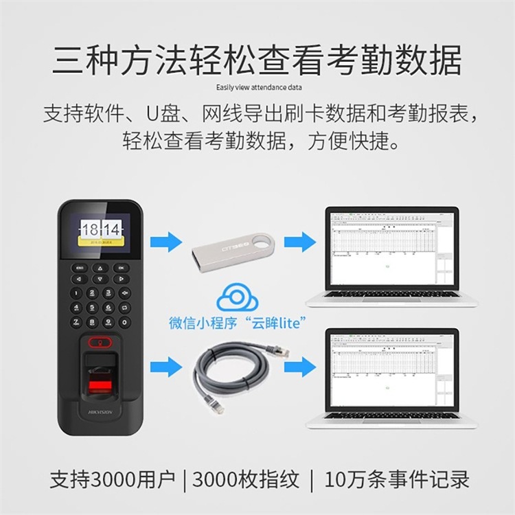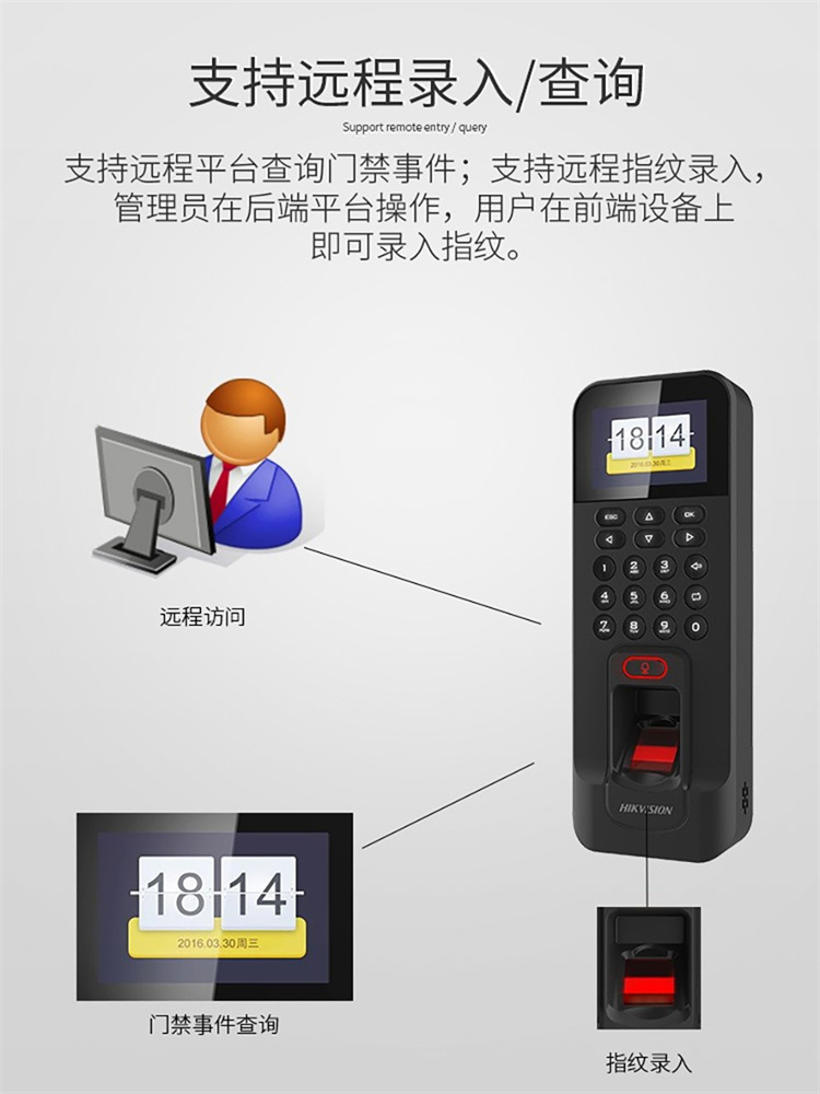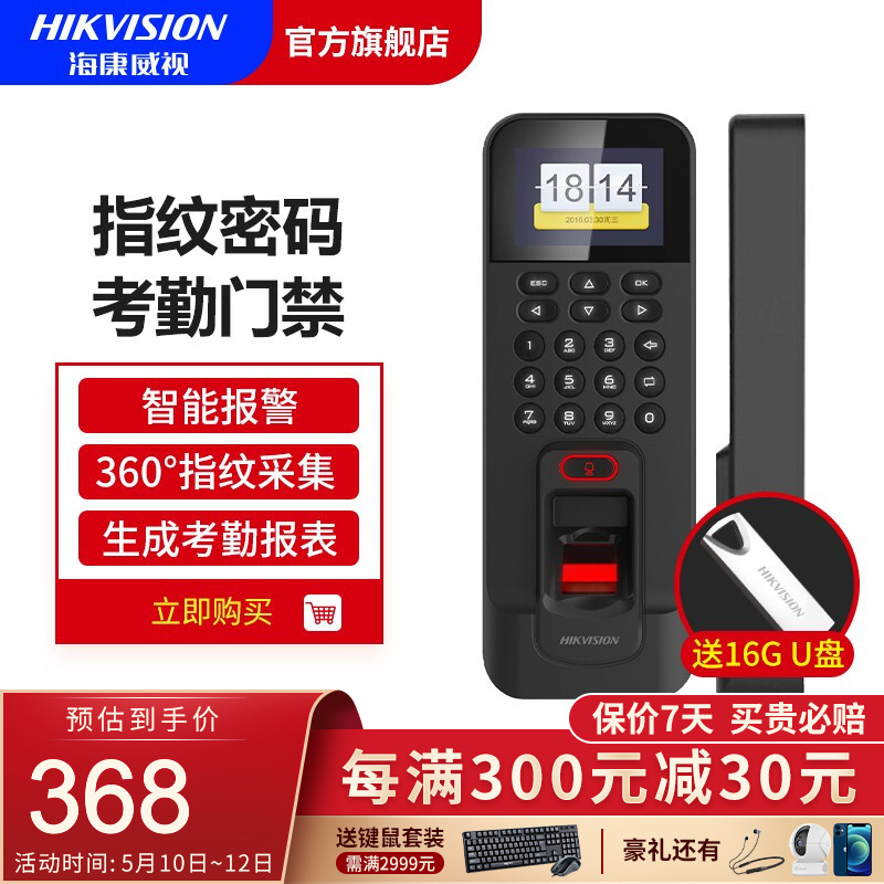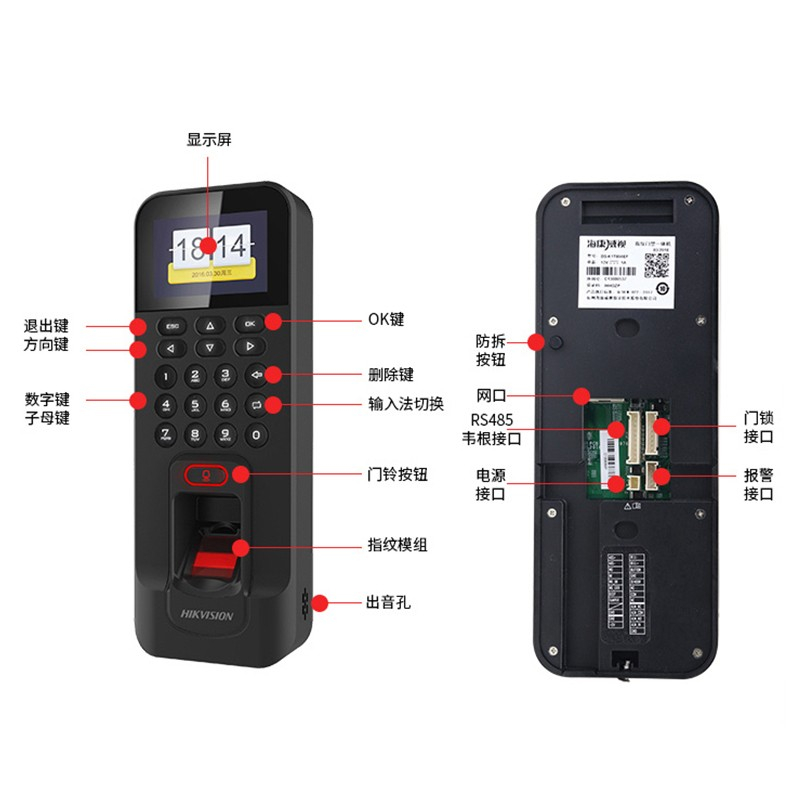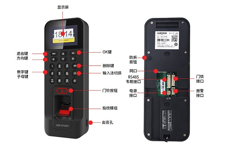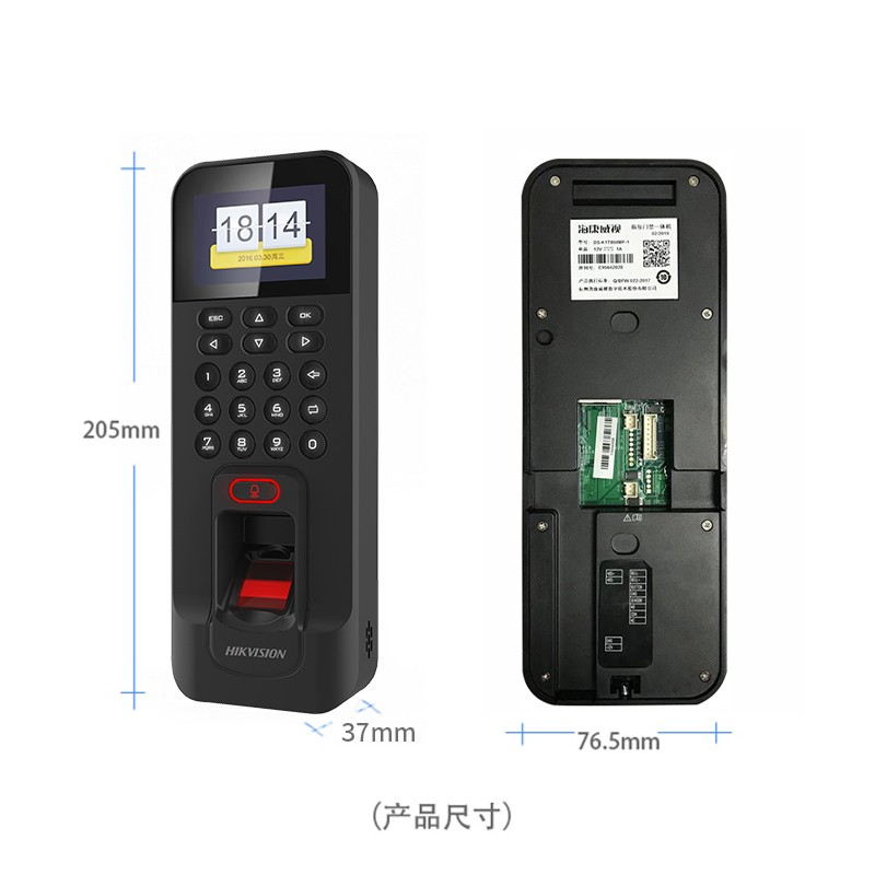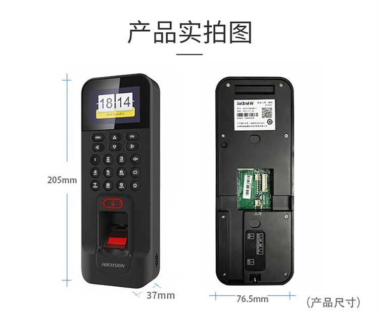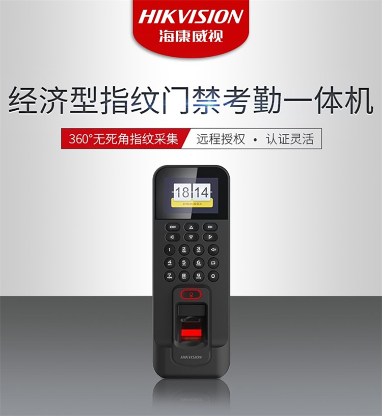 海康威视 DS-K1T804BF 205*76.5*37mm 门禁考勤一体机(指纹刷卡密码开门) 黑色(单位:台)