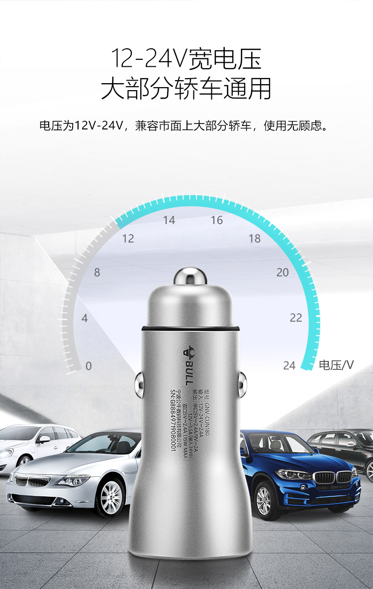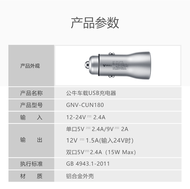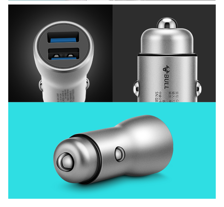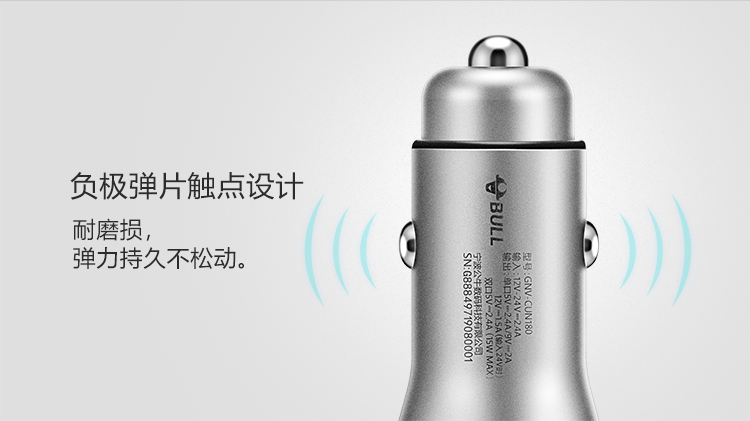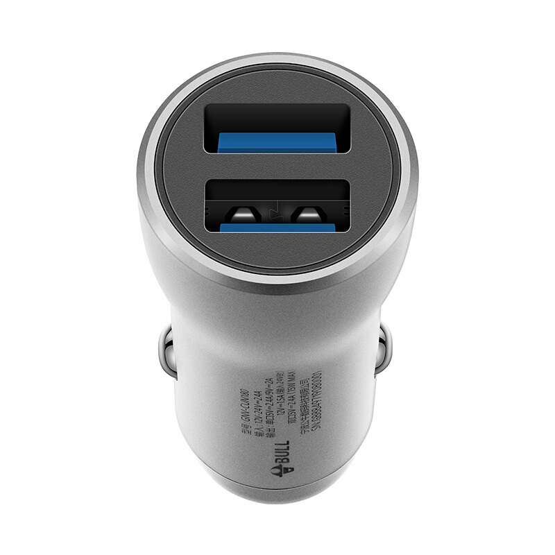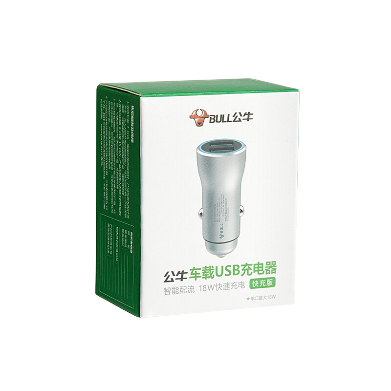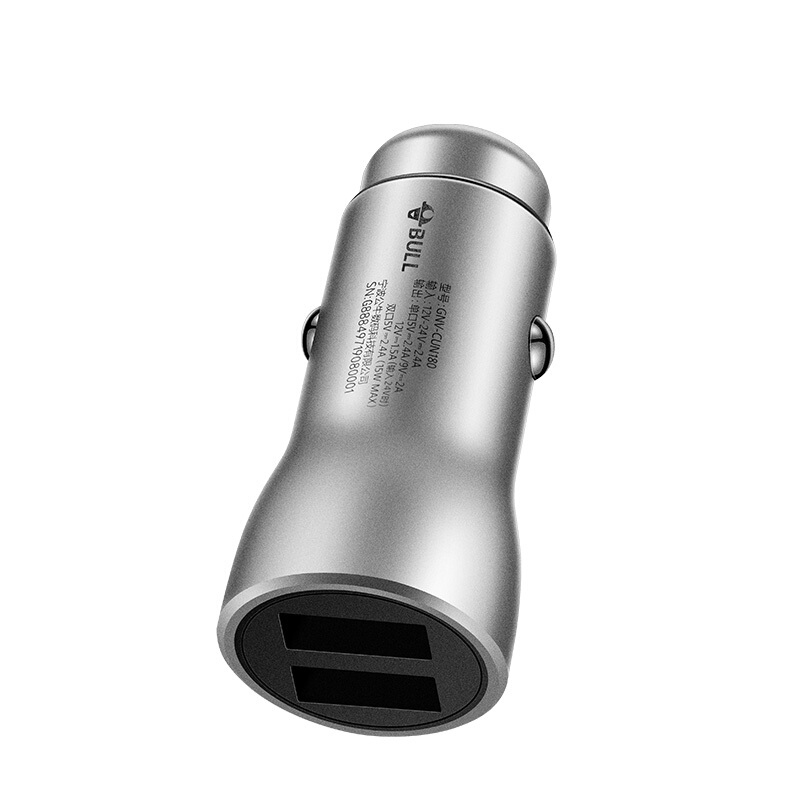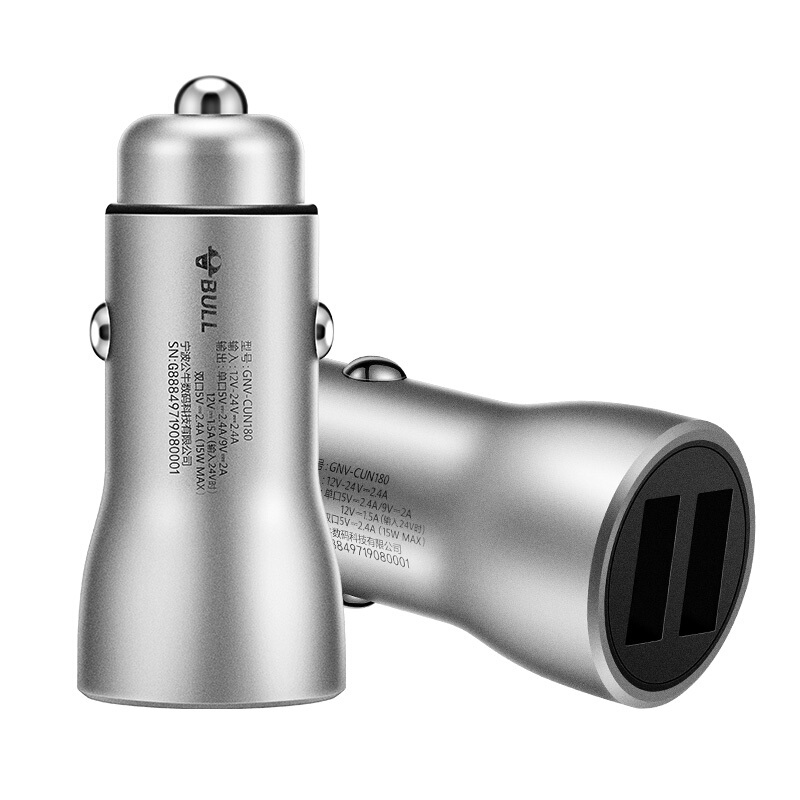 公牛(BULL)CUN180 18W/2.4A双USB一拖二 车载充电器 车充点烟器快充 银色(单位:个)