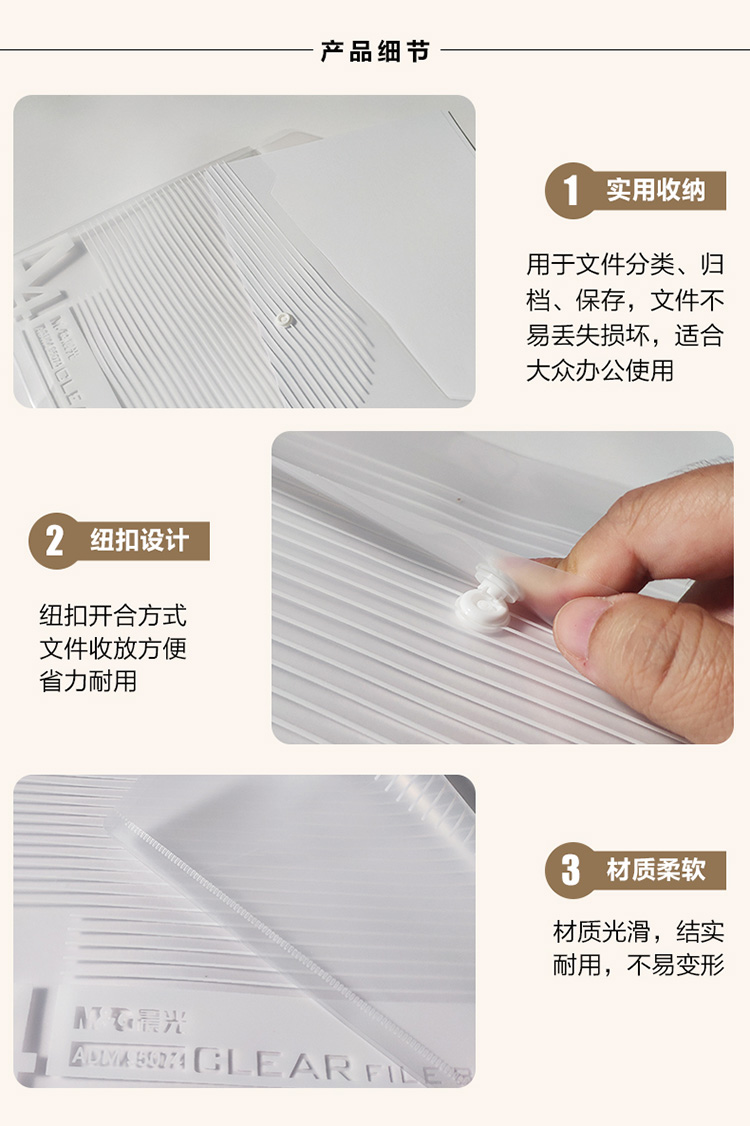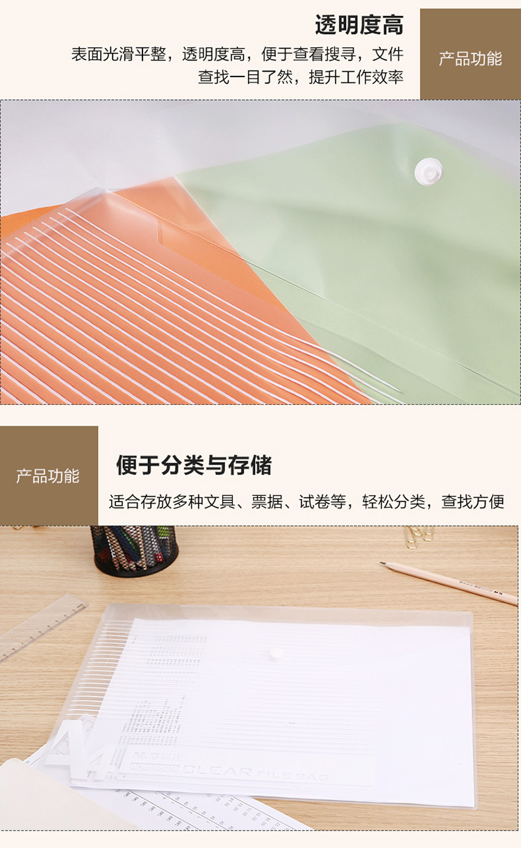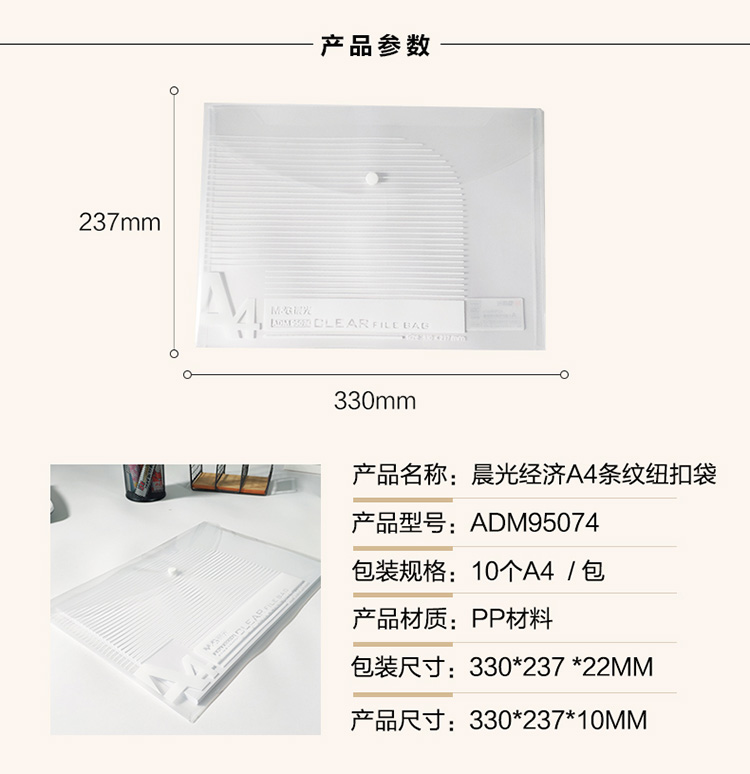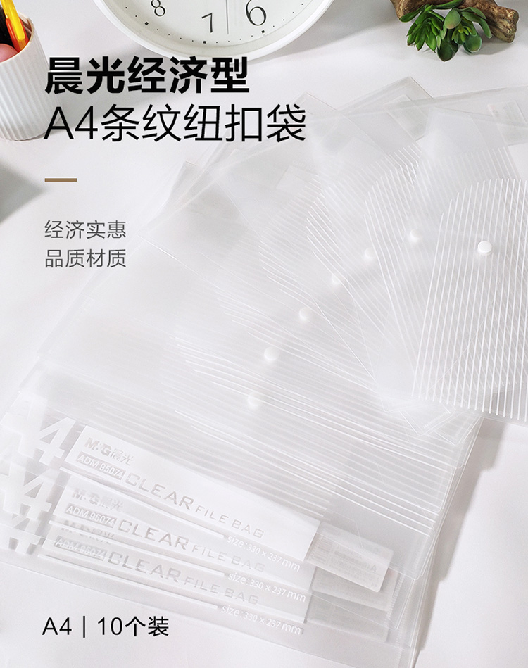 晨光 ADM95074 经济型条纹按扣文件袋 A4 10个/包 单位:包 透明