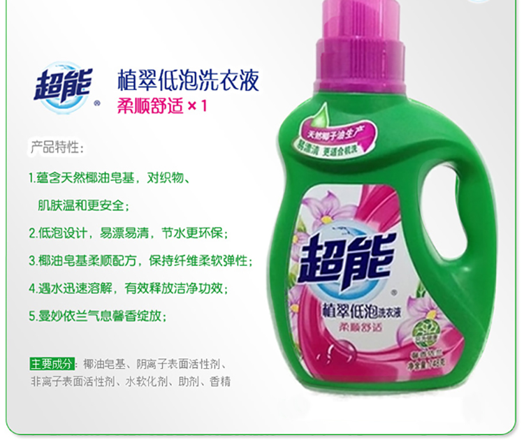 超能 植翠低泡柔顺舒适洗衣液馨香依兰 7...