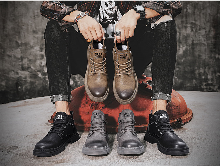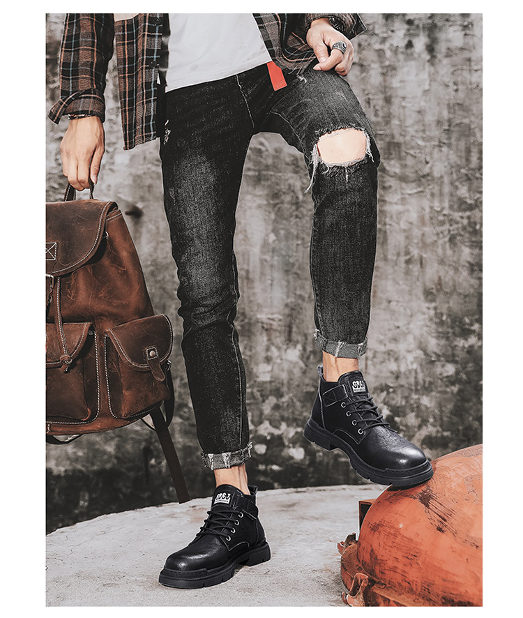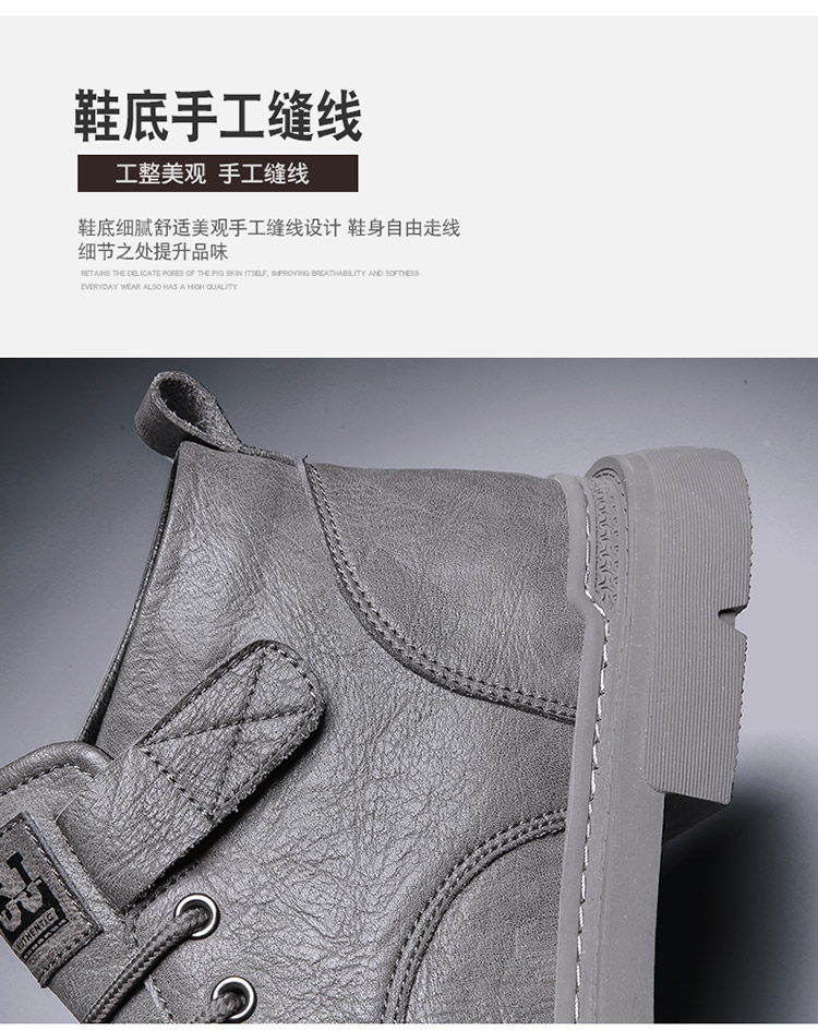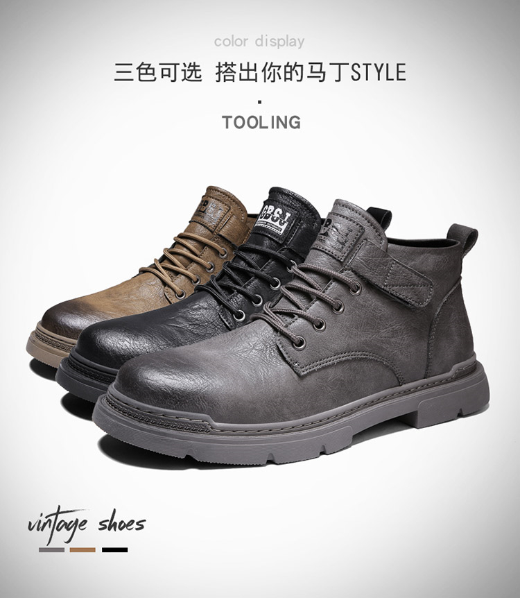 木林森(MULINSEN)男鞋新款马丁靴复古真皮短靴高帮鞋子男潮鞋 黑色 39(单位:件)