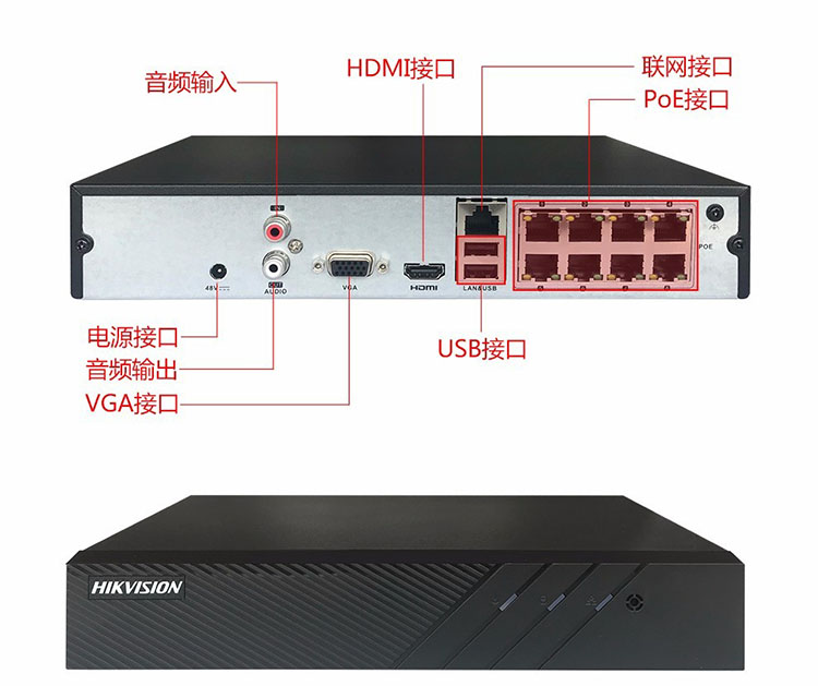 海康威视 DS-7808NB-K2/8P 支持400万 POE供电 8路网络 2盘位 监控硬盘录像机(单位:个)