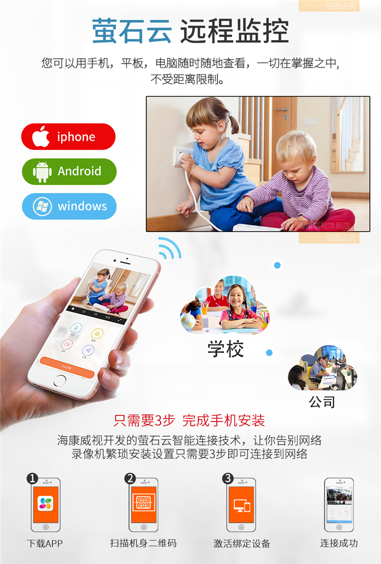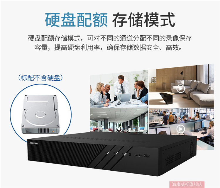 海康威视 DS-7916N-R4 4T存储 监控硬盘录像机(含poe/网线)单位:台
