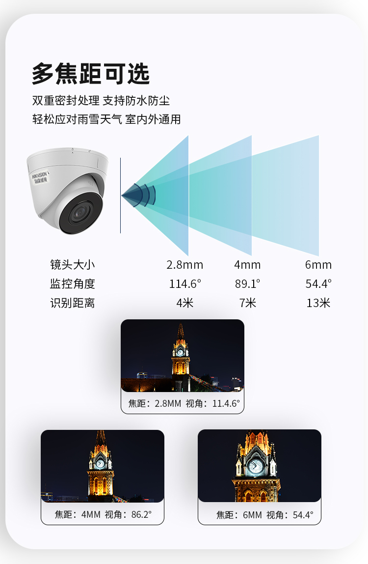 海康威视/HIKVISION DS-IPC-T12HV3-IA/POE 监控摄像头 200万 音频网络远程POE 2.8MM 白色